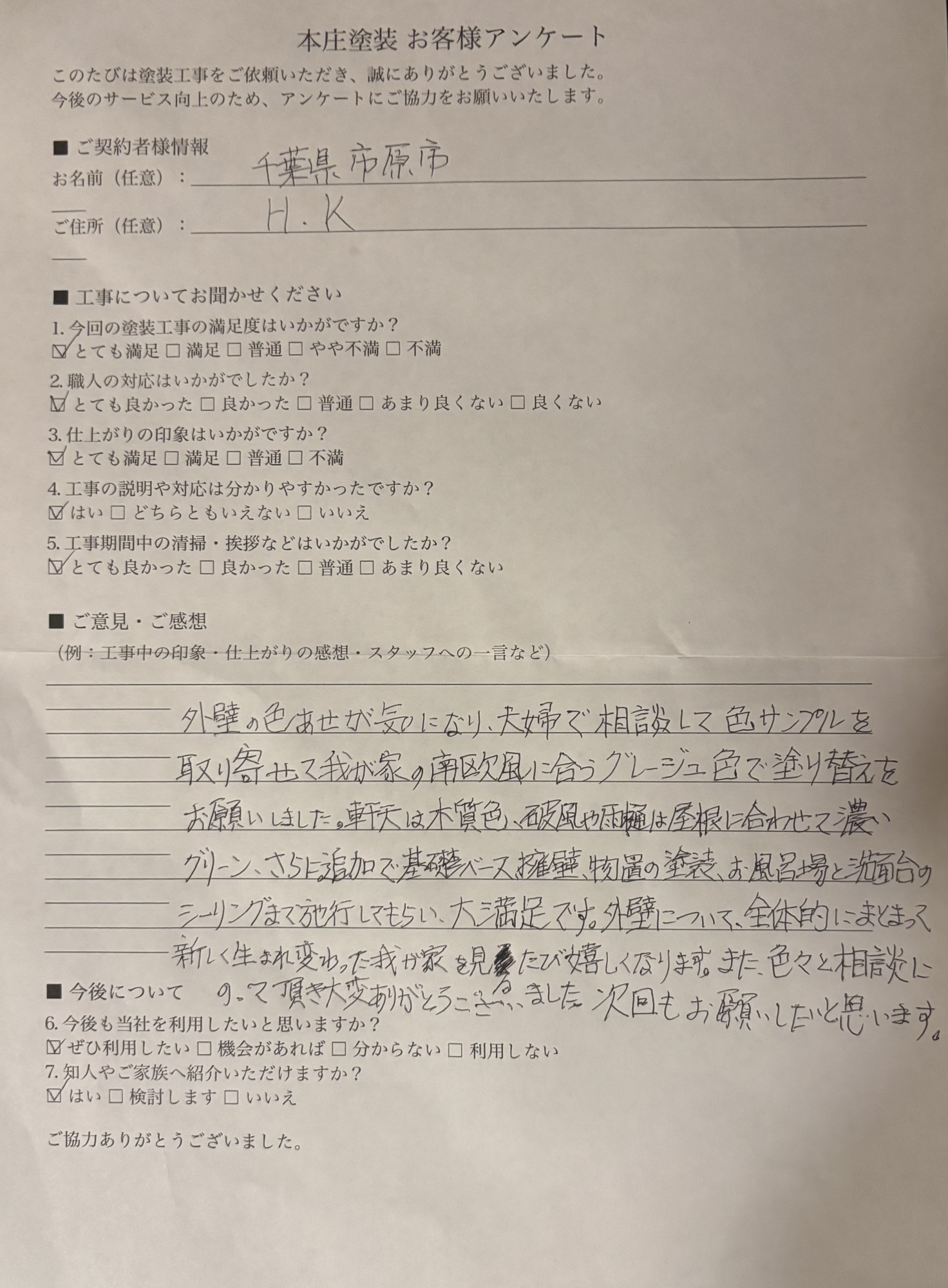 戸建ての塗り替え・外壁塗装工事は千葉県市原市の本庄塗装へ